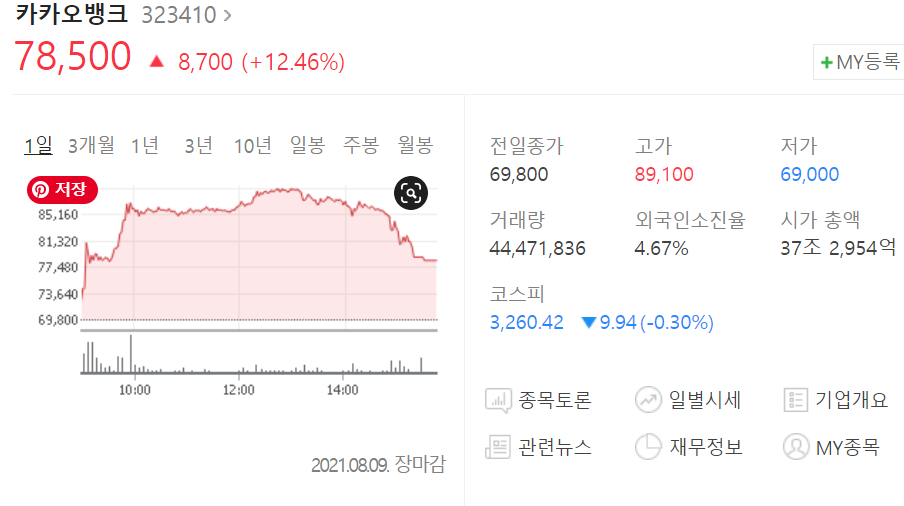 카카오뱅크가 상장일에 분명 떨어질거다, 너무 고평가되어있다?