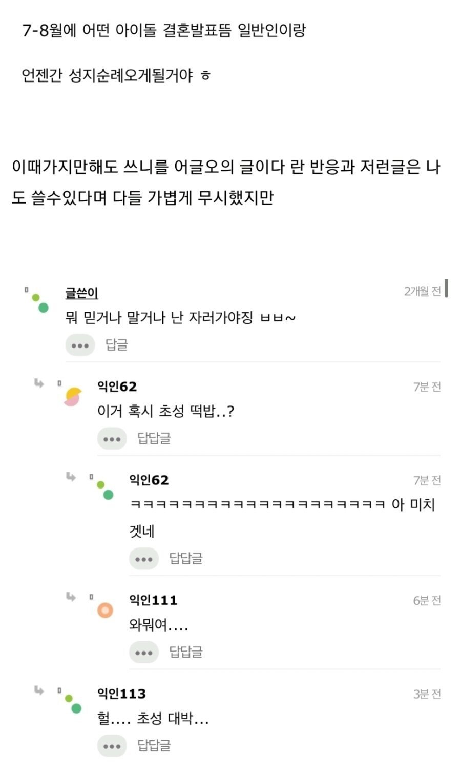 인터넷 커뮤니티의 글이니 가볍게 봐주시면 될것 같아요.