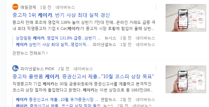 케이카 상장일: 2021년 10월 미정입니다.