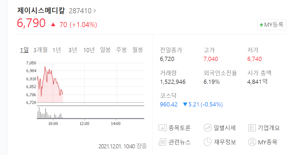 먼저 언급한 한국 코스닥 종목으로는 제이시스메디칼이다.