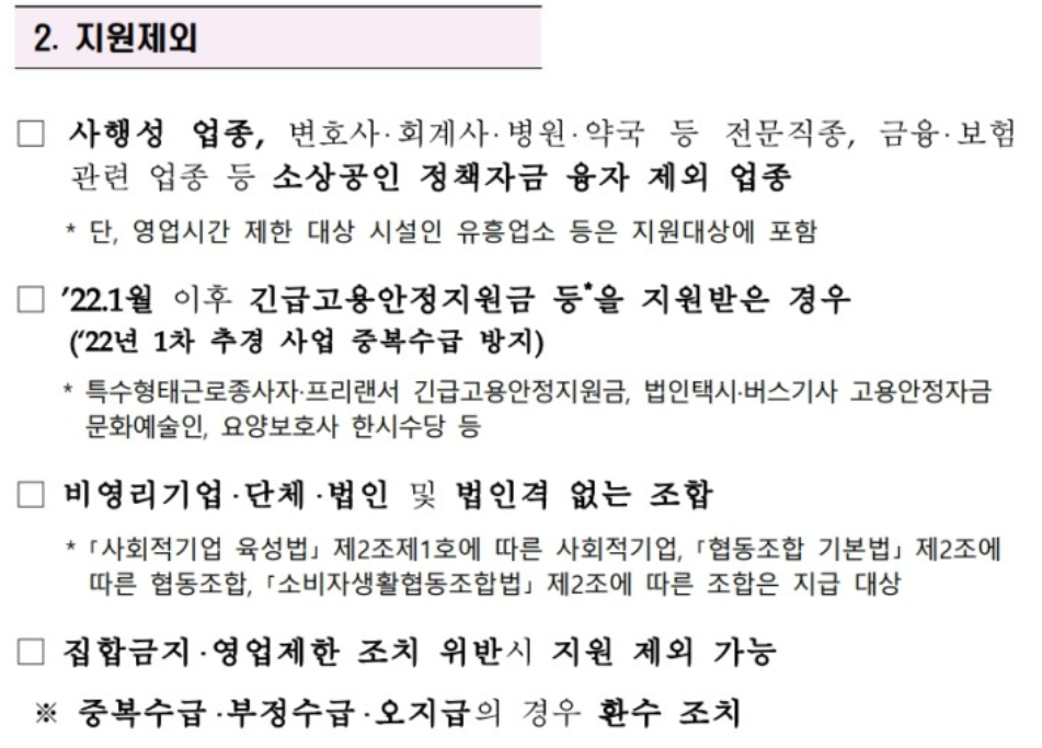 지원제외 업종도 이번 3차는 2차와 크게 다르지 않을 것 같습니다.