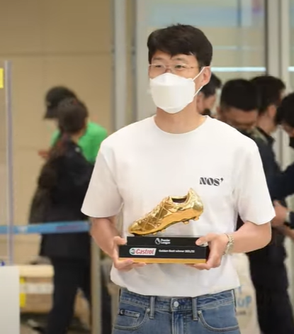 5월 24일 오늘 골드부츠를 수상한 손흥민 선수가 공항에 입국하였습니다. 많은 팬들의 환호와 취재친의 열기가 뜨거웠는데요. 손흥민 선수가 들고있는 골든부츠 뿐만 아니라, 공항패션으로 입고 있는 티셔츠 또한 덩달아 화제가 되었는데요.