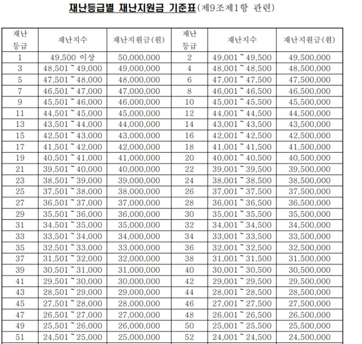 또한 재난 등급별 재난기원금 최소 기준은 50만원부터 지급되는 걸로 보입니다. 자세한 정보는 정부에서 발표하는 대로