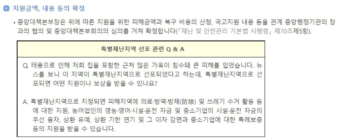 1. 재정지원으로 지자체 부담 지방비를 국고로 추가 지원해서 원활하게 피해 복구