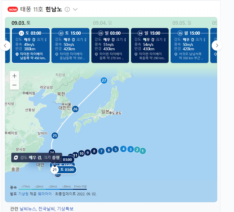 태풍 힌남노 예상 경로가 갑작스레 바꼈습니다. 어제만 하더라도 우리나라는 거치지 않는다고 하였는데요.