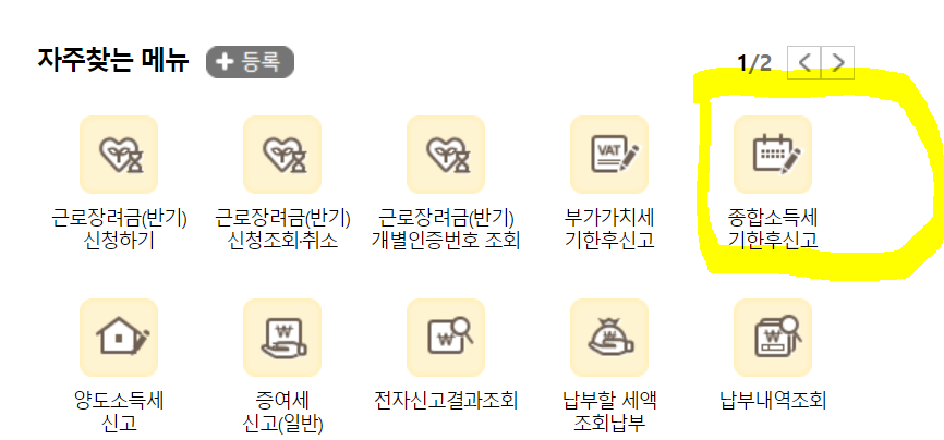 현재 내 환급금이 얼마인지 궁금하실 겁니다. 종합소득세 환급금 조회하기 위해서 홈택스 홈페이지에 들어가주세요. 홈택스 홈페이지에서 종합소득세 신고를 누르며 정기신고와 기한후 신고 메뉴가 나옵니다. 5월 한달동안 신고를 했다면, 정기신고를 누르면 됩니다. 5월 이후에 신고를 하는거라면 기한후 신고를 눌러주세요
