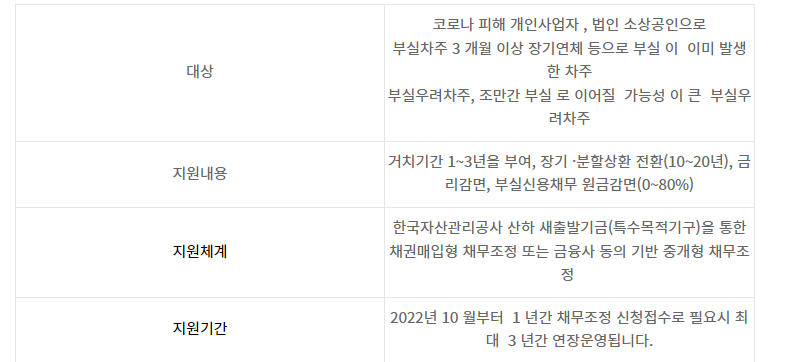 | 👉소상공인 채무조정 대상(안내) |