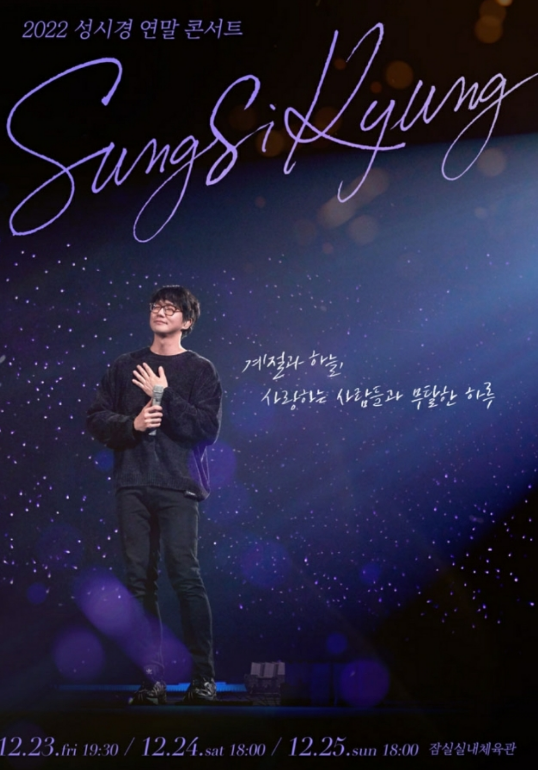 성시경은 오늘 12월 23일부터 25일까지 3일간 "서울 잠실실내체육관에서 2022 성시경 연말 콘서트"를 개최합니다.