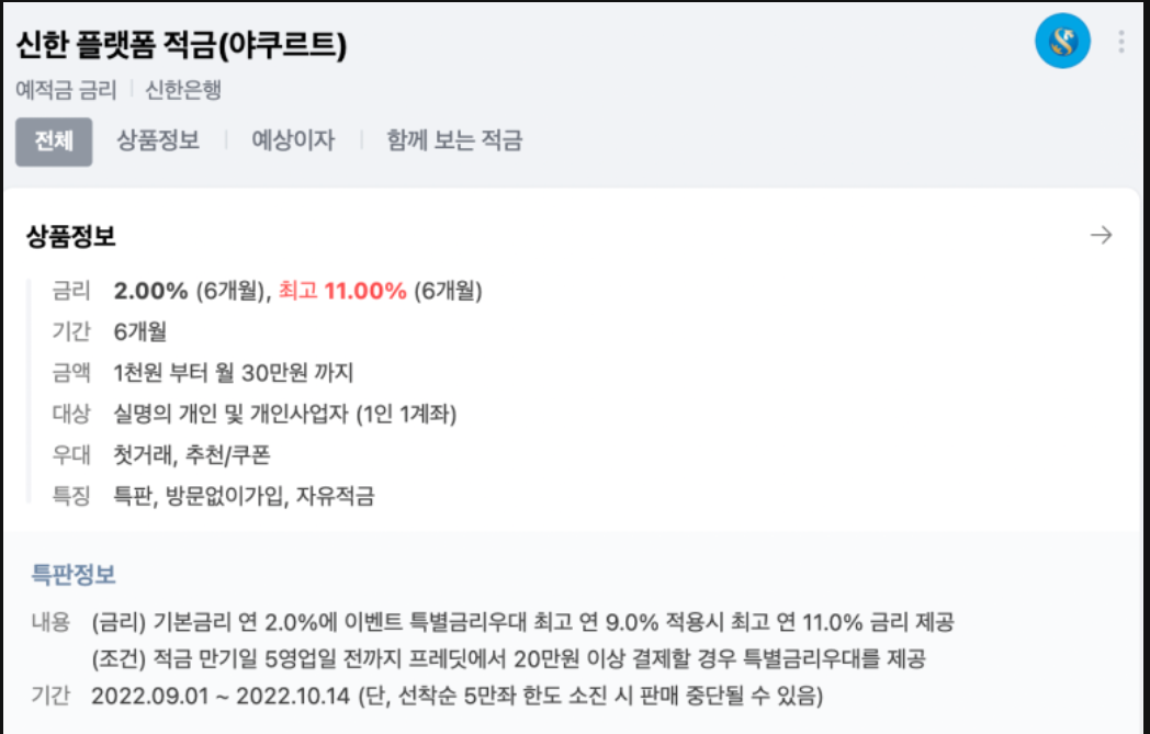 신한 플랫폼 적금(야쿠르트) 조건 총정리