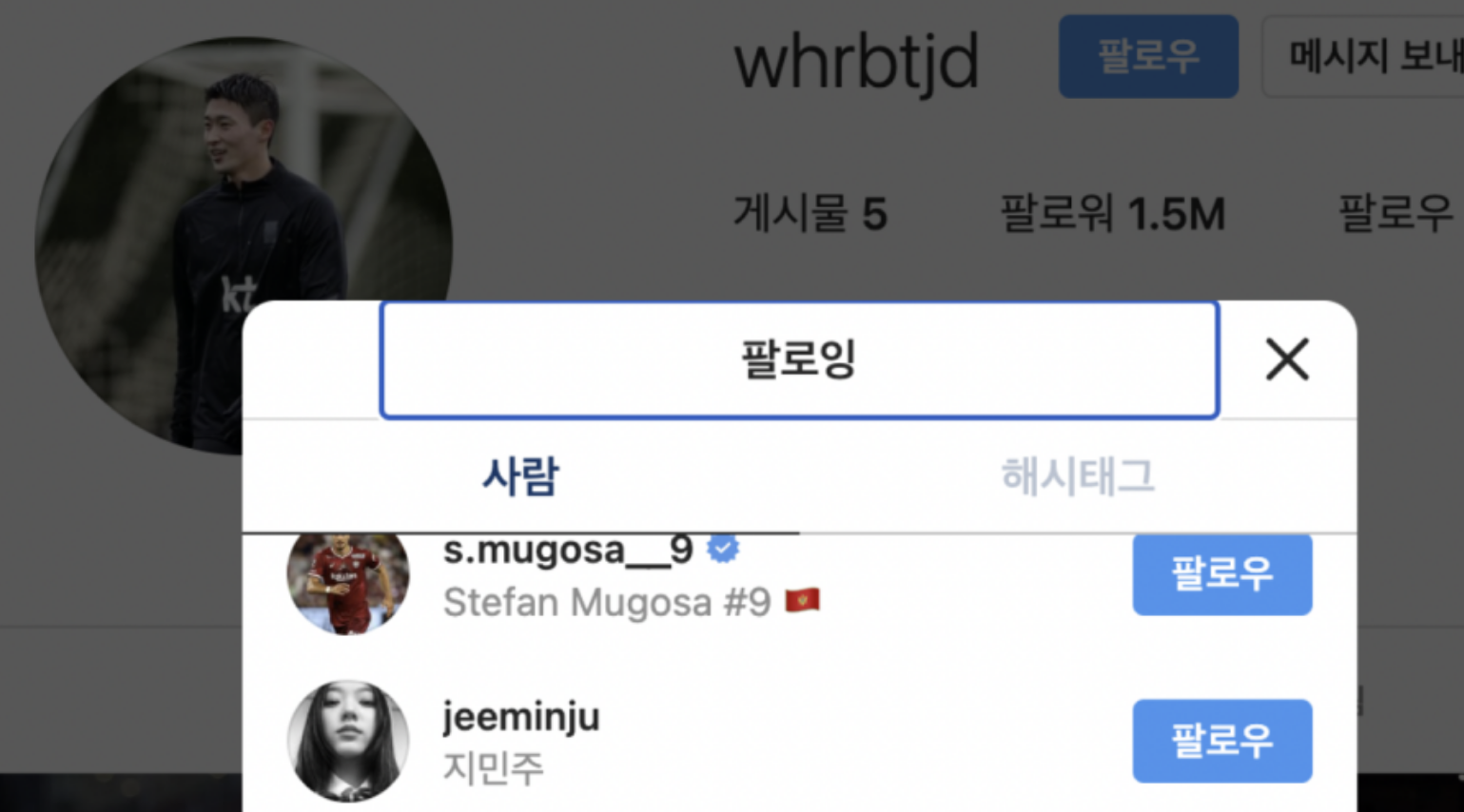 조민규 선수와 인스타 팔로워가 300명인데, 그중하나가 지민주 모델이었죠. (서로 팔로워 상태)