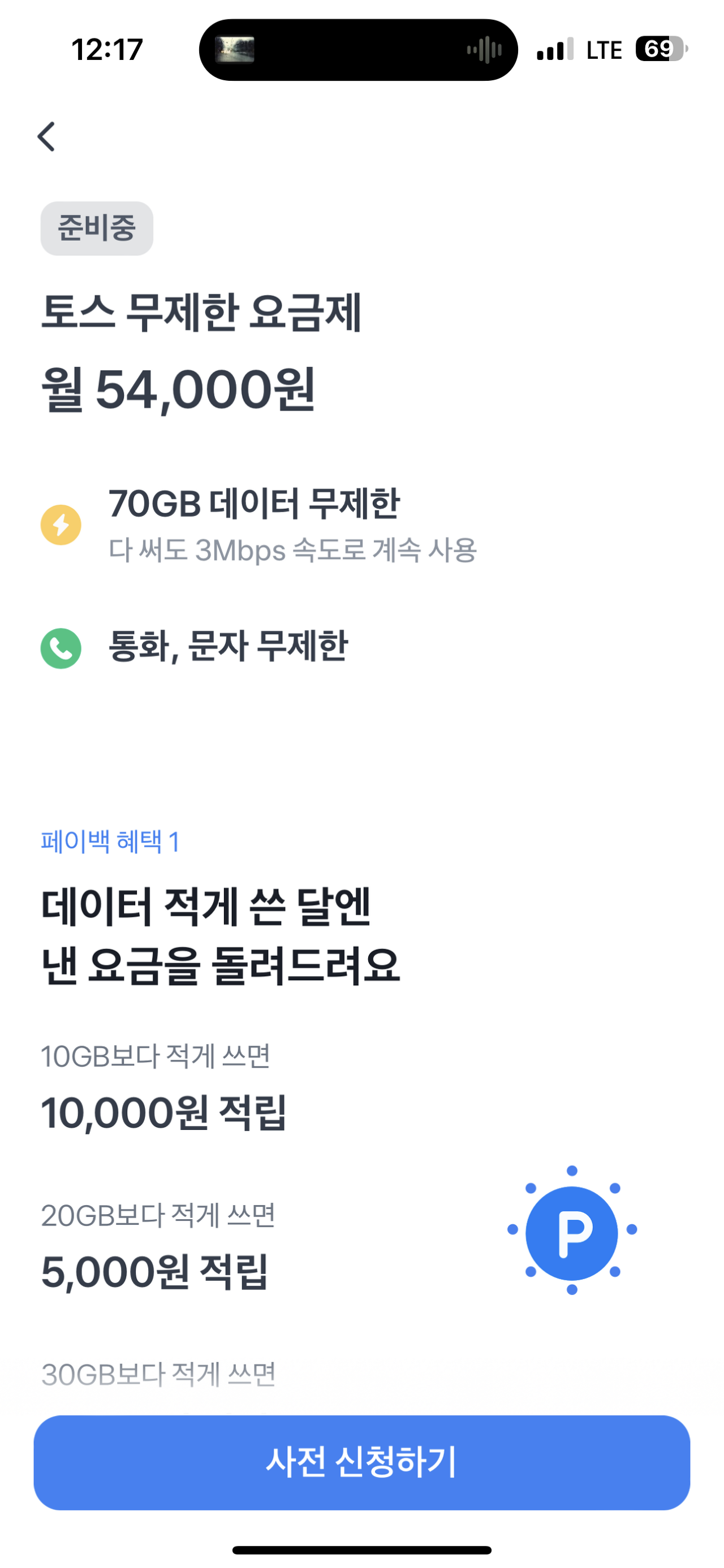 현재 토스 알뜰요금제 구성은 54,000원이 어떻게 알뜰이냐며 데이터 작게 쓰면 적립해주는 건...크게 메리트가 없는...