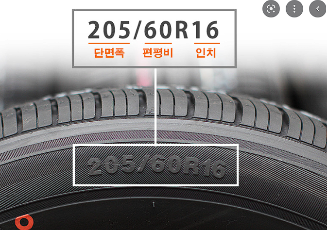위 타이어를 예시로 우리는 여기서 205 60 16 만 보면 되는거야