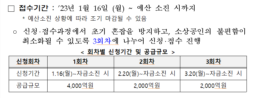 또한 소상공인 직대는 1회차부터 3회차까지 나누어 신청을 받습니다.