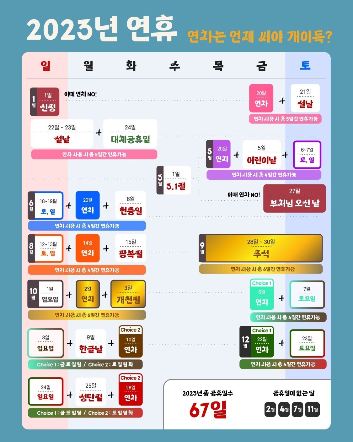 12월 22일 연차 + 23일 토요일 = 연차 사용시 총 4일간 연휴 가능!!
