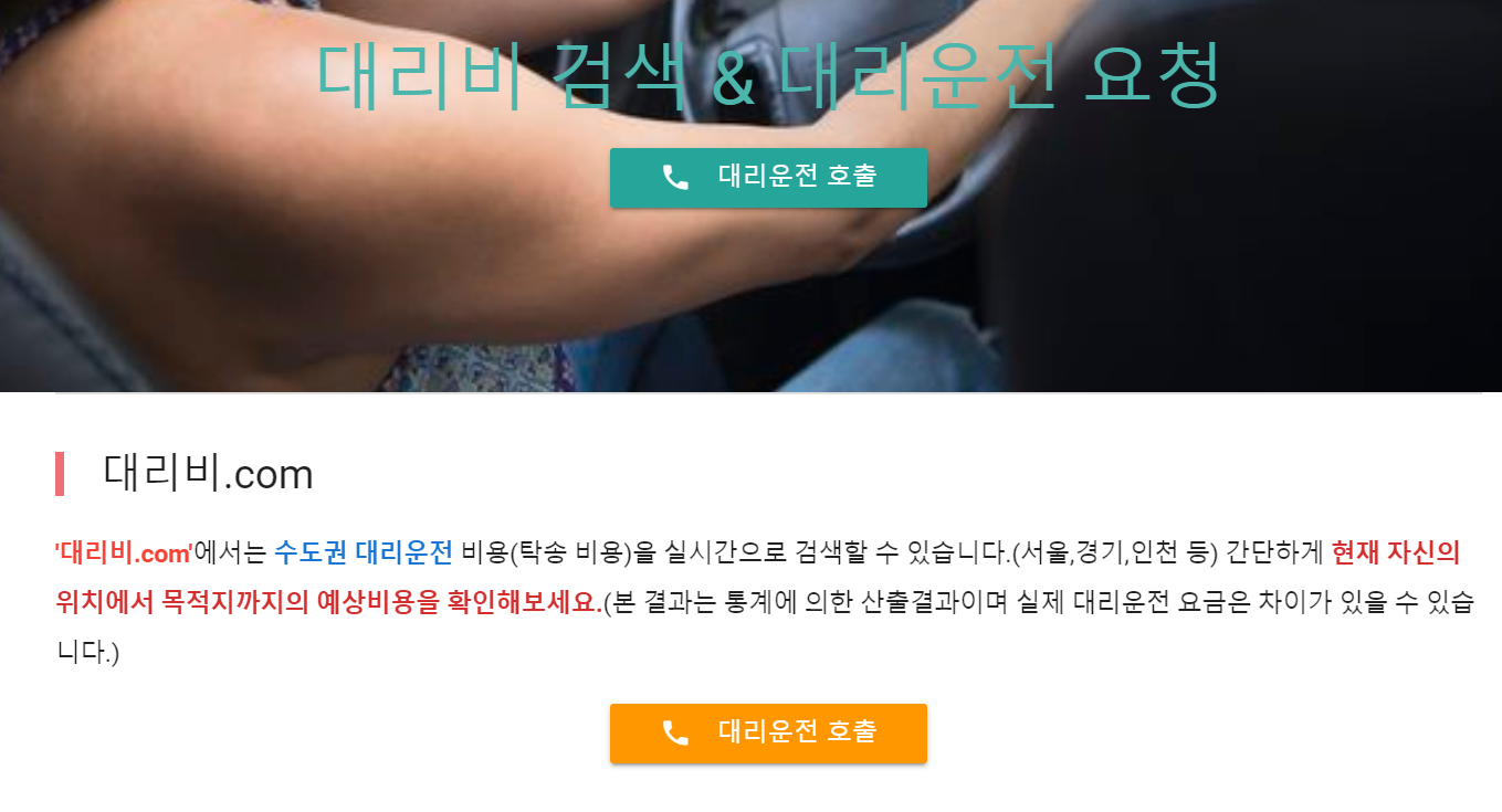 대리비 운전요금 조회를 검색할 수 있는 사이트입니다.