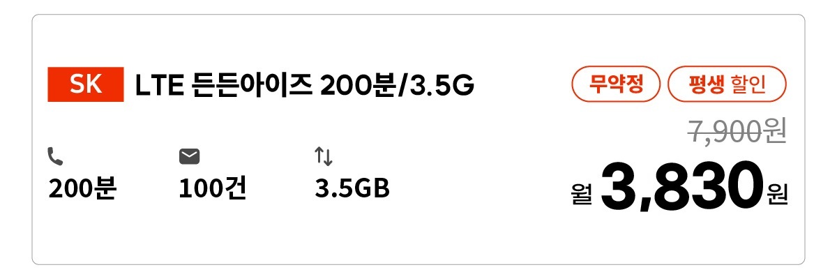 👉LTE 든든아이즈(200분/3.5G)