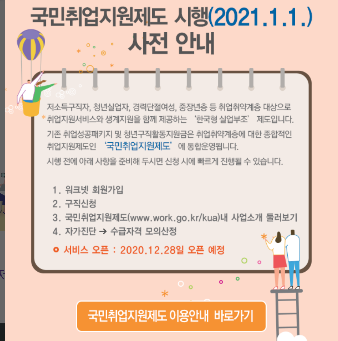 2021년부터 정부지원으로 국민취업지원제도가 시작됩니다.