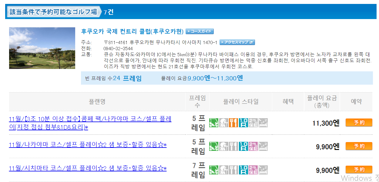후쿠오카 골프장 예약방법