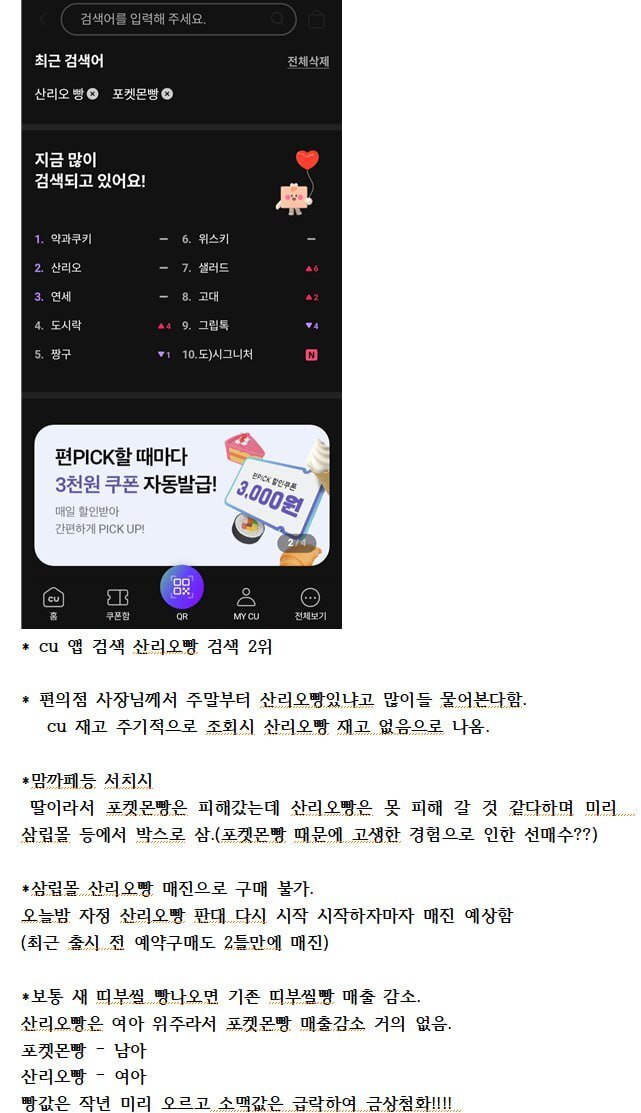 저번주 수요일 산리오빵 출시했는데 점점 매진 속도가 빨리지네요