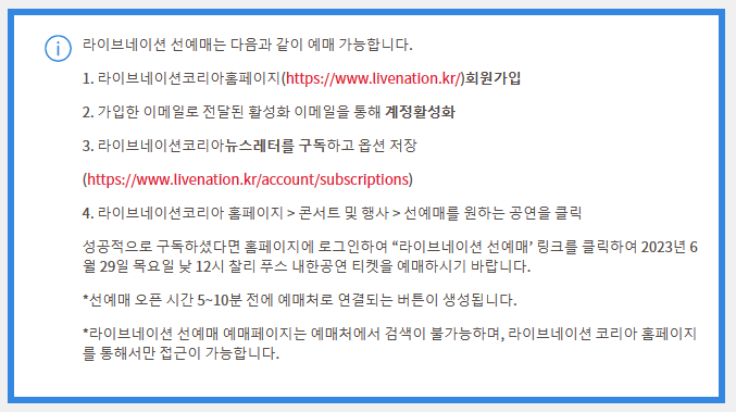 2. 라이브네이션 선예매: 2023년 6월 29일(목) 12시