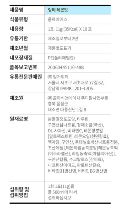 (사실 그것보다는 링티는 이온음료로 보는게 맞는 것 같습니다)