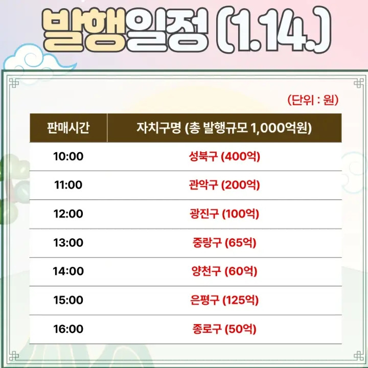 발행 기간: 2025년 1월 14일(화)부터 16일(목)까지